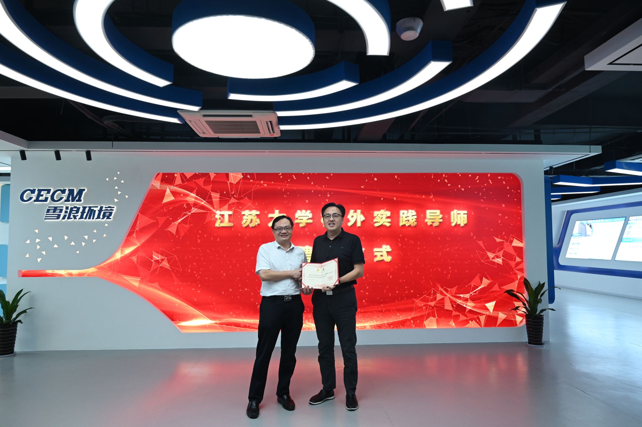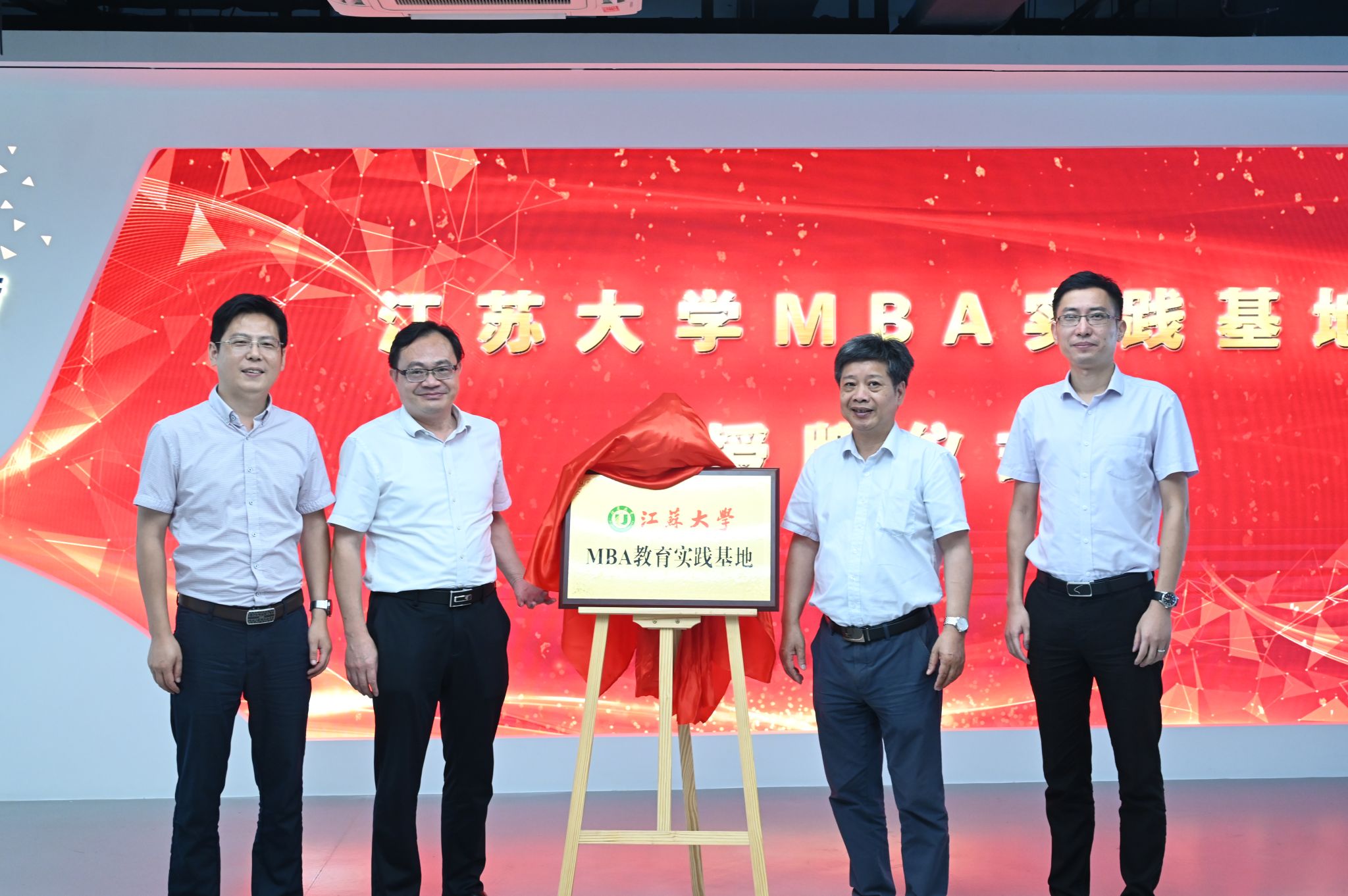在热烈的气氛中,杜建国、金帅与陈卓成、蒋洪元共同为江苏大学MBA教育实践基地揭牌。杜建国为胡建民颁发了江苏大学校外实践导师聘书。