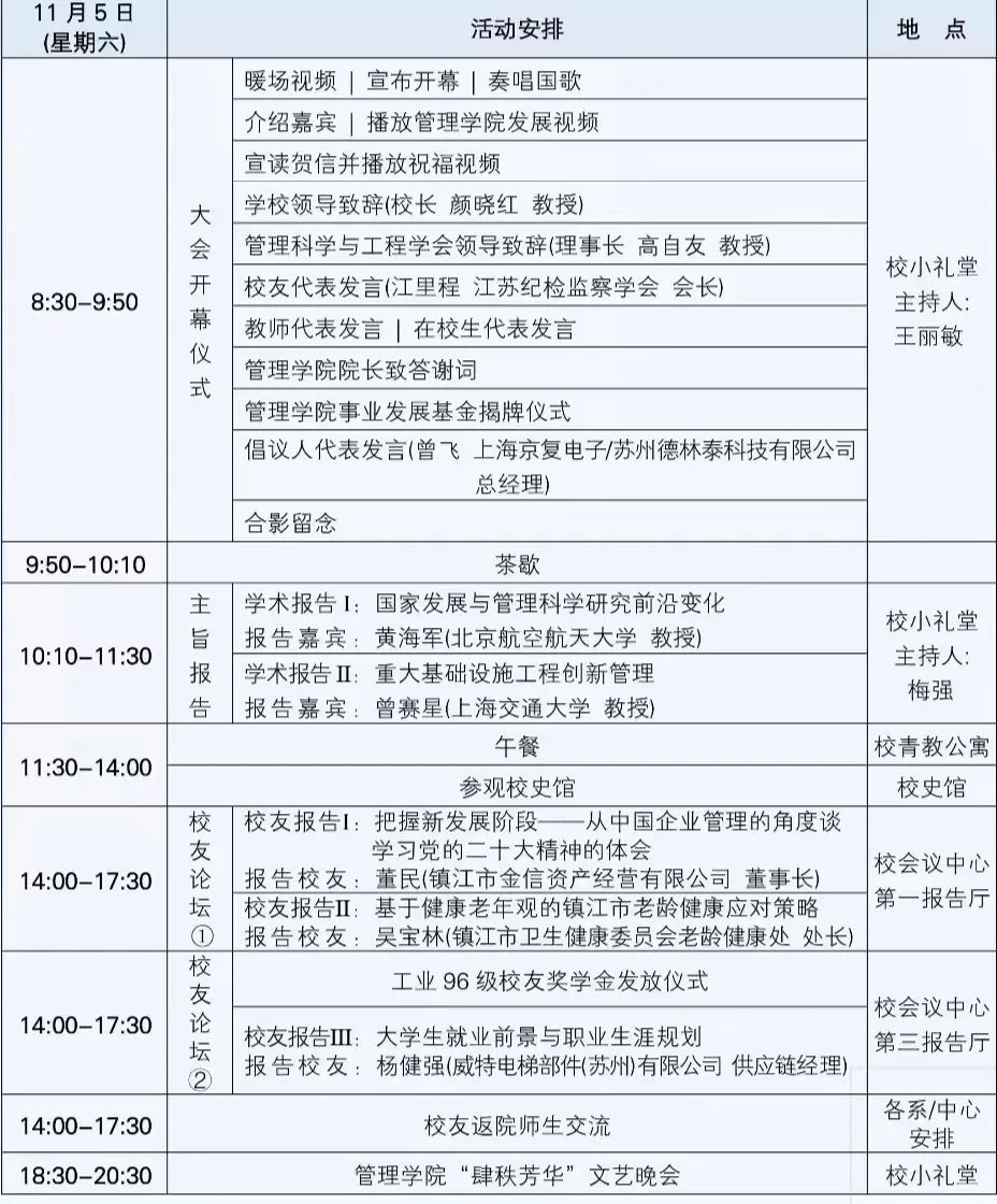 11月5日 7:30-9:00 江苏大学小礼堂门厅